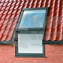 Карнизное окно соединяется с мансардным окном единым универсальным окладом для карнизного комплекса EUV/B (подходит для любых кровельных покрытий).