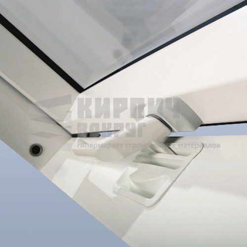 Ручка белого цвета, расположенная в нижней части оконной створки, позволяет легко открывать и закрывать окно, а также фиксировать его в 2-х положениях проветривания;