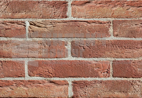 Красный кирпич с песком различного механического состава, каждый кирпич приобретает различные оттенки, обогащая кладку цветами от серого до фиолетового. Рекомендуются растворы светлого цвета, чтобы выделить различные тона изделия.